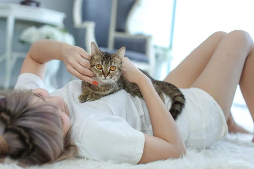 Кіт на животі господині / Фото Shutterstock