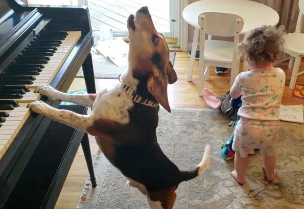 Коли таке трапляється, це означає, що вашій собаці не боляче. Якби таке було, він спробував би втекти від музики або закрити вуха. Деякі мелодії можуть здатися їм звичними і вони просто намагаються імітувати це, як якусь розмову,