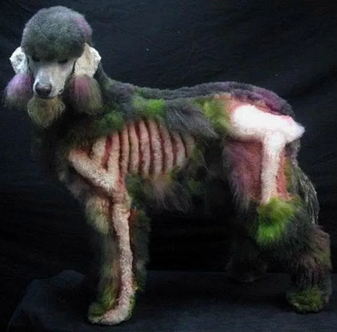 Ще одні кіномани одягли свого улюбленця у костюм зомбі. Собаці наче личить, але виглядає моторошно.