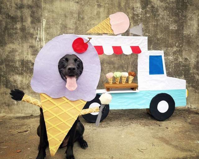 Більшість образів чоловік виготовляє з фетру, картону та клею. Крім того, намагається обирати для кожного собаки індивідуальне вбрання. Наприклад, Бастер обожнює смаколики, тому костюми у нього зазвичай у формі їжі. Бінс навпаки не любить великі вбрання, але їй подобаються капелюхи та окуляри.