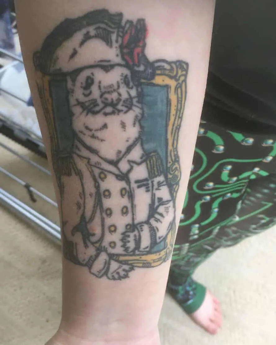 Уборщица с Гримсби Люси Опеншоу сделала два тату, связанные с котом: его портрет на ноге и отпечаток лапы на руке. Кот Кевин попал к ней, когда переживала сложный период в жизни, и сейчас она не представляет себя без любимца.