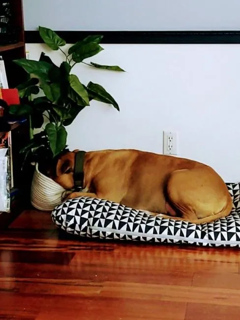 Например, этой собаке не понравилось, что хозяева погладили кота. Она уткнулась мордой в вазон и даже уснула в такой позе!