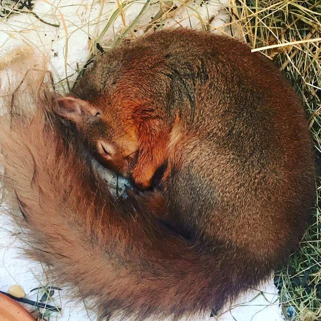 У белки была поломанная лапка, поэтому Ноэл Хоукинс решили о ней позаботиться. Известно, что у мужчины большой опыт спасения китов и дельфинов.