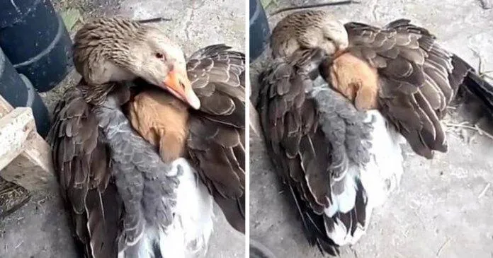 Гусь обнимает щенка / Фото фейсбук