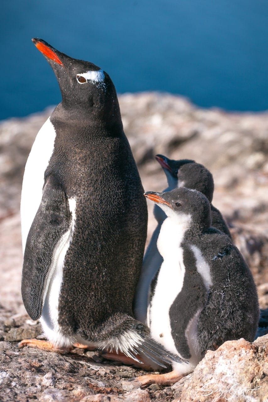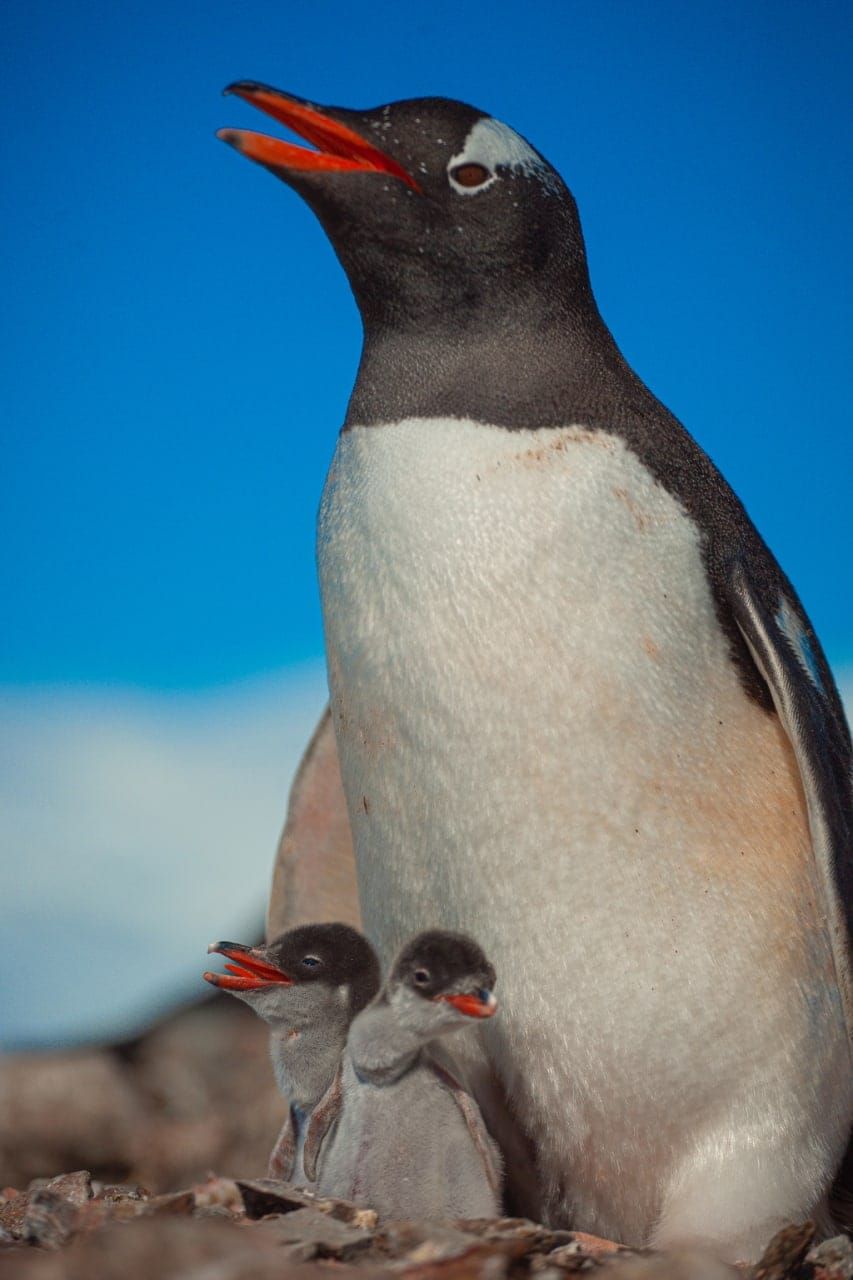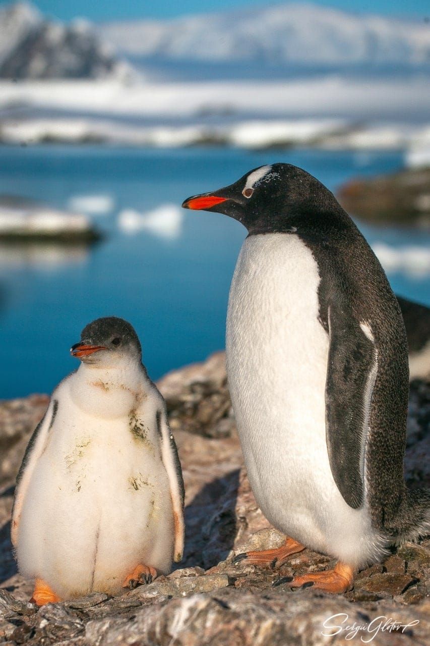 Малята підросли, але все ще тримаються біля батьків. Вони вже встигли стати улюбленцями соціальних мереж, науковці регулярно діляться унікальними знімками цих полярних птахів. І на початку січня 2023 року показали, як ті підросли за місяць.